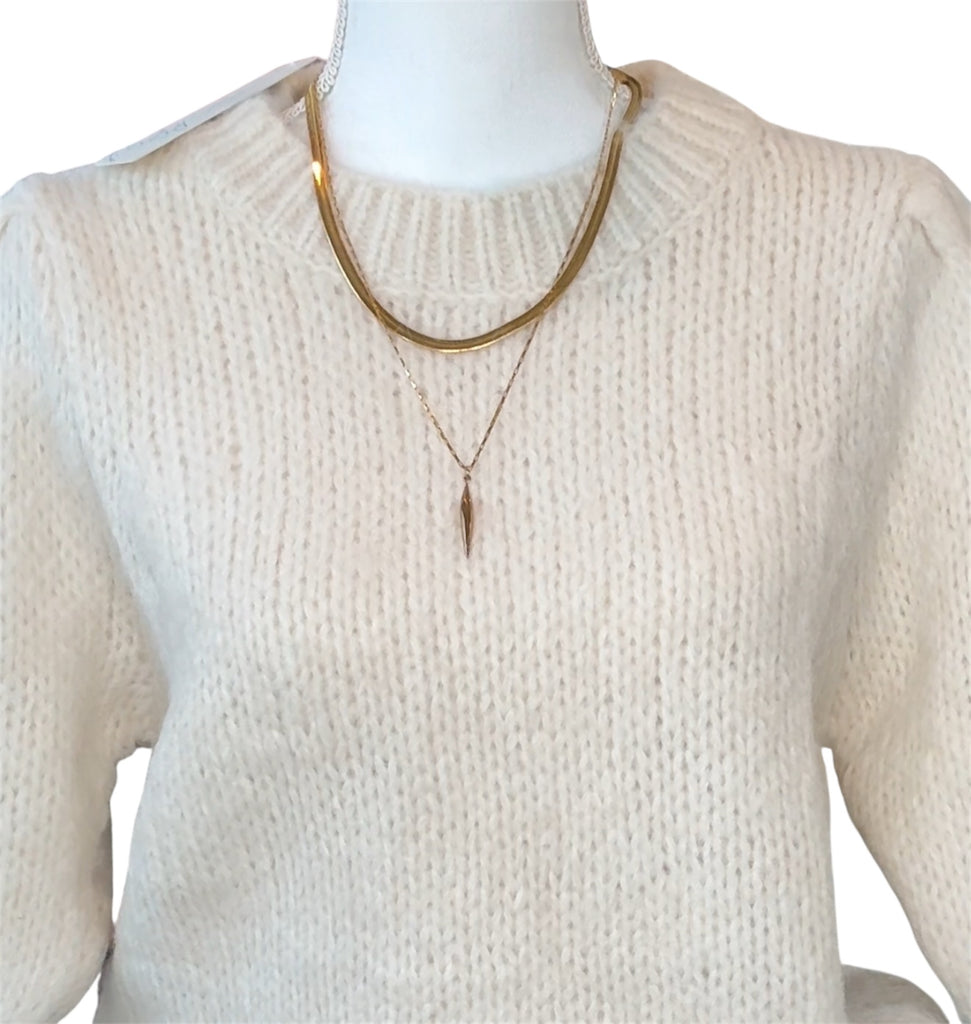 Gold plated, stainless steel. Choose from 16 inch, 18 inch. Wear both to get the layered look.